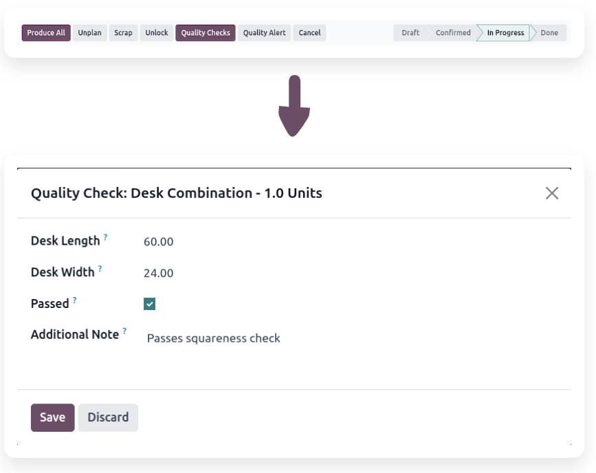 Mantén la consistencia y la calidad de los productos, configura controles de calidad recurrentes en las órdenes de fabricación e inventario.