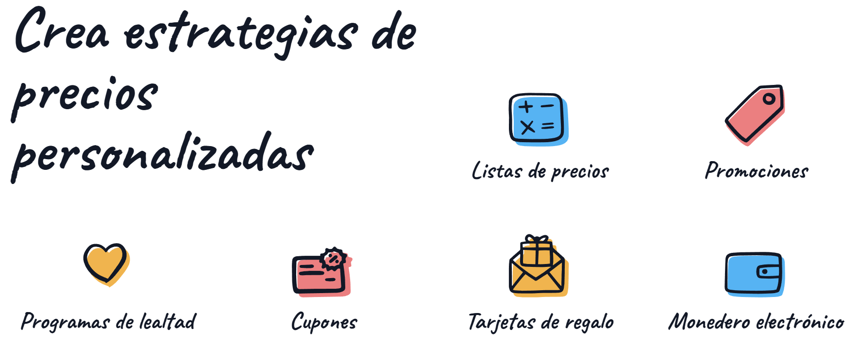 Configura precios únicos para tus productos, variantes y categorías. Además, se integran con las aplicaciones en línea en Comercio electrónico, Inventario y Fabricación.