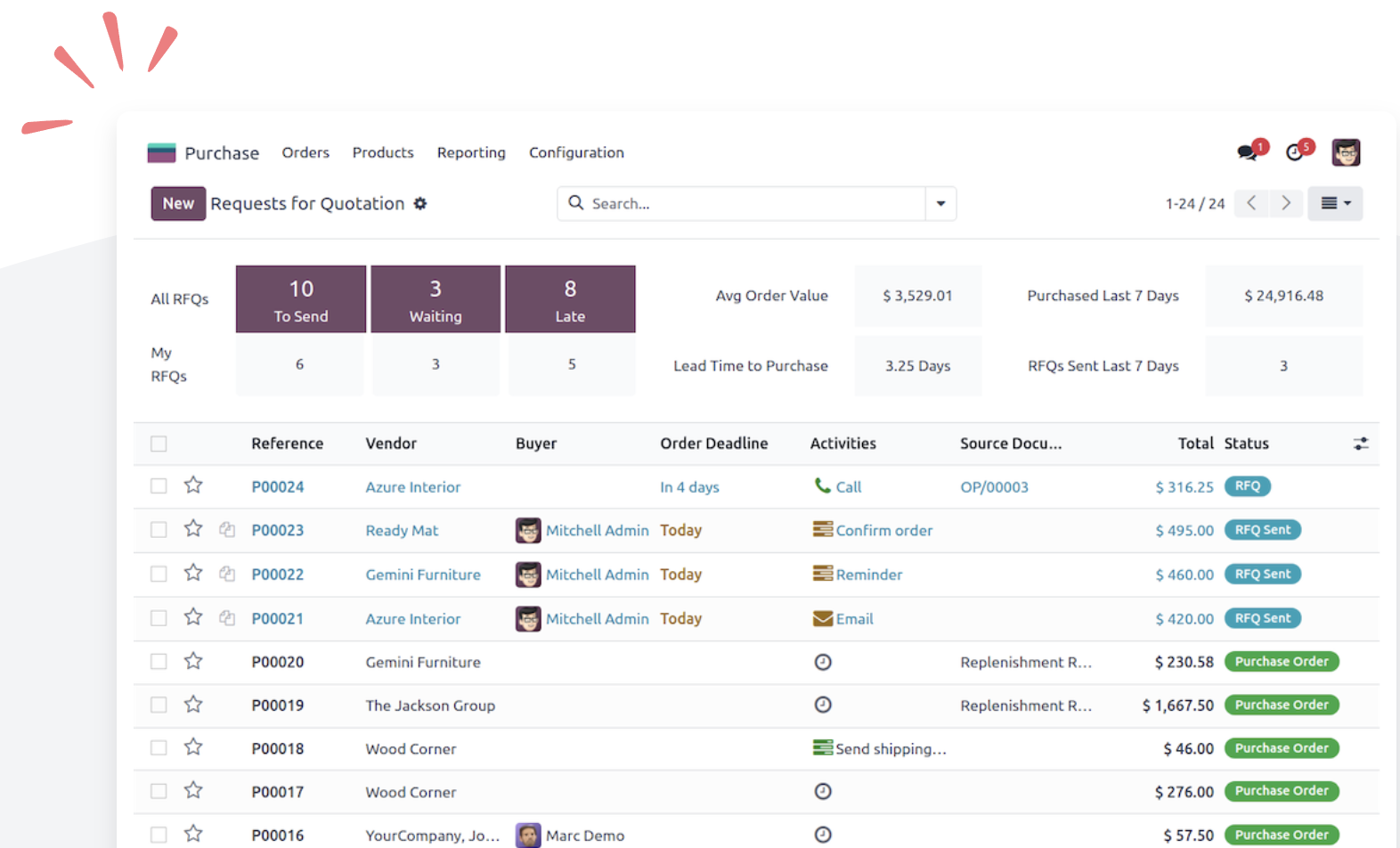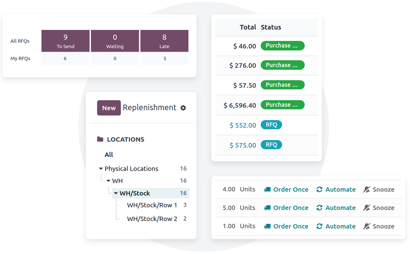 Simplifica tus solicitudes de cotización y órdenes de compra gracias a las reglas de reordenamiento automatizadas y crea reglas y métodos de reabastecimiento personalizados. Sincroniza tus procesos más importantes donde sea necesario, ahora tienes la herramienta adecuada.